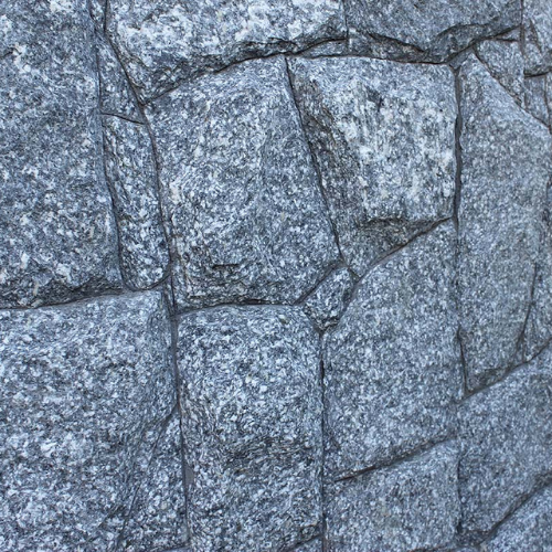 Pedra natura em tom cinza com pequenas manchas brancas, com superfície irregular e relevos marcantes, proporcionando um visual rústico, robusto e cheio de personalidade